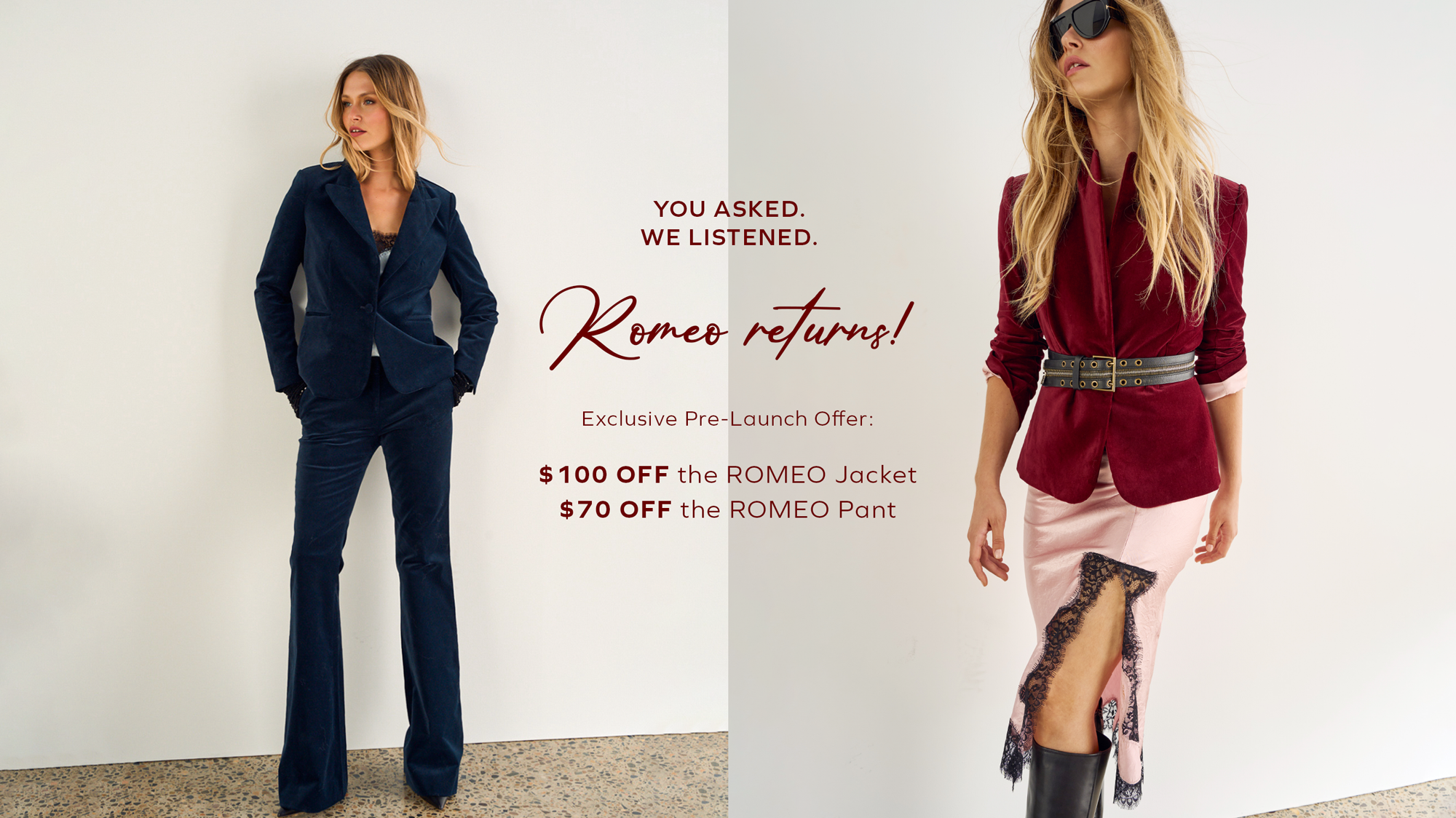 This is your early access advantage. Once Romeo lands (20–30 April), this offer disappears. Secure your pieces before they arrive.. and before they return to full price.